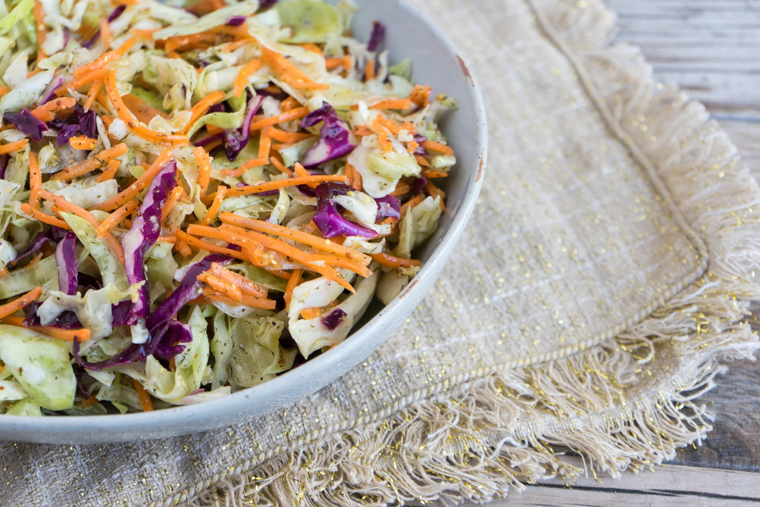 Despite my southern roots, I've never been a big fan of coleslaw. I don't love the taste of mayonnaise (I'm weird, I know) and since that is a major part of almost every slaw recipe, I've always avoided it. But because I love cabbage and slaw is such a perfect summer side, I decided to put my own spin on traditional coleslaw and make a tangy, mayo-free version. A simple citrusy dijon vinaigrette with dill gives this slaw a tangy pop that complements any of your favorite summer staples (it's amazing with pulled pork!). The best part is it takes no time to throw together thanks to the bags of shredded cabbage and carrots. I got mine at Trader Joe's but you can find pre-washed and chopped cabbage and carrot slaw and nearly every grocery store.